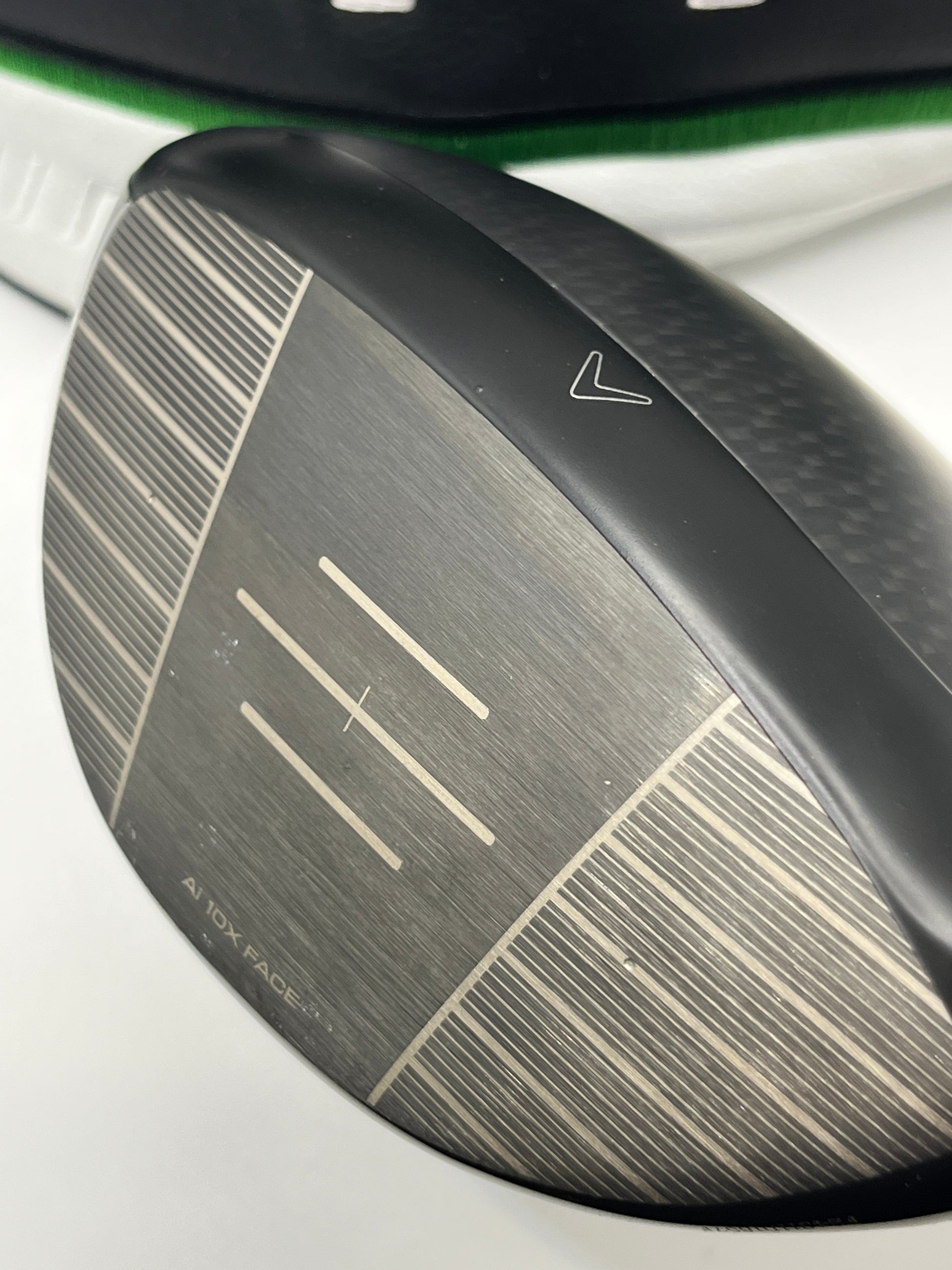 This ex demo club head is in superb condition aside from a very small scratch on the rear of the head. We've attempted to show this in the last photo. However, it is very small and only noticed on close inspection. It has no skymarks and no other marks to the crown. Comes with its headcover.