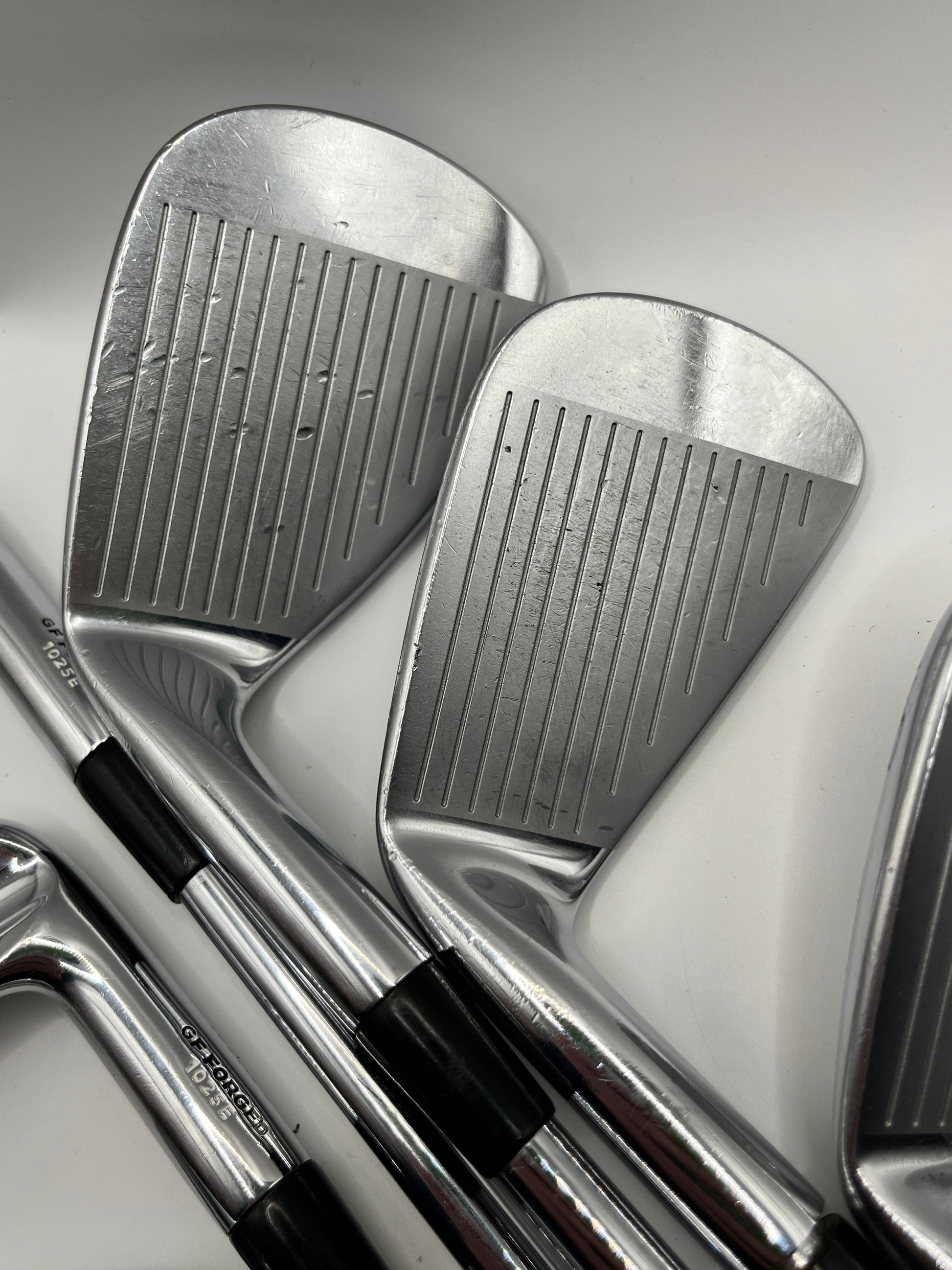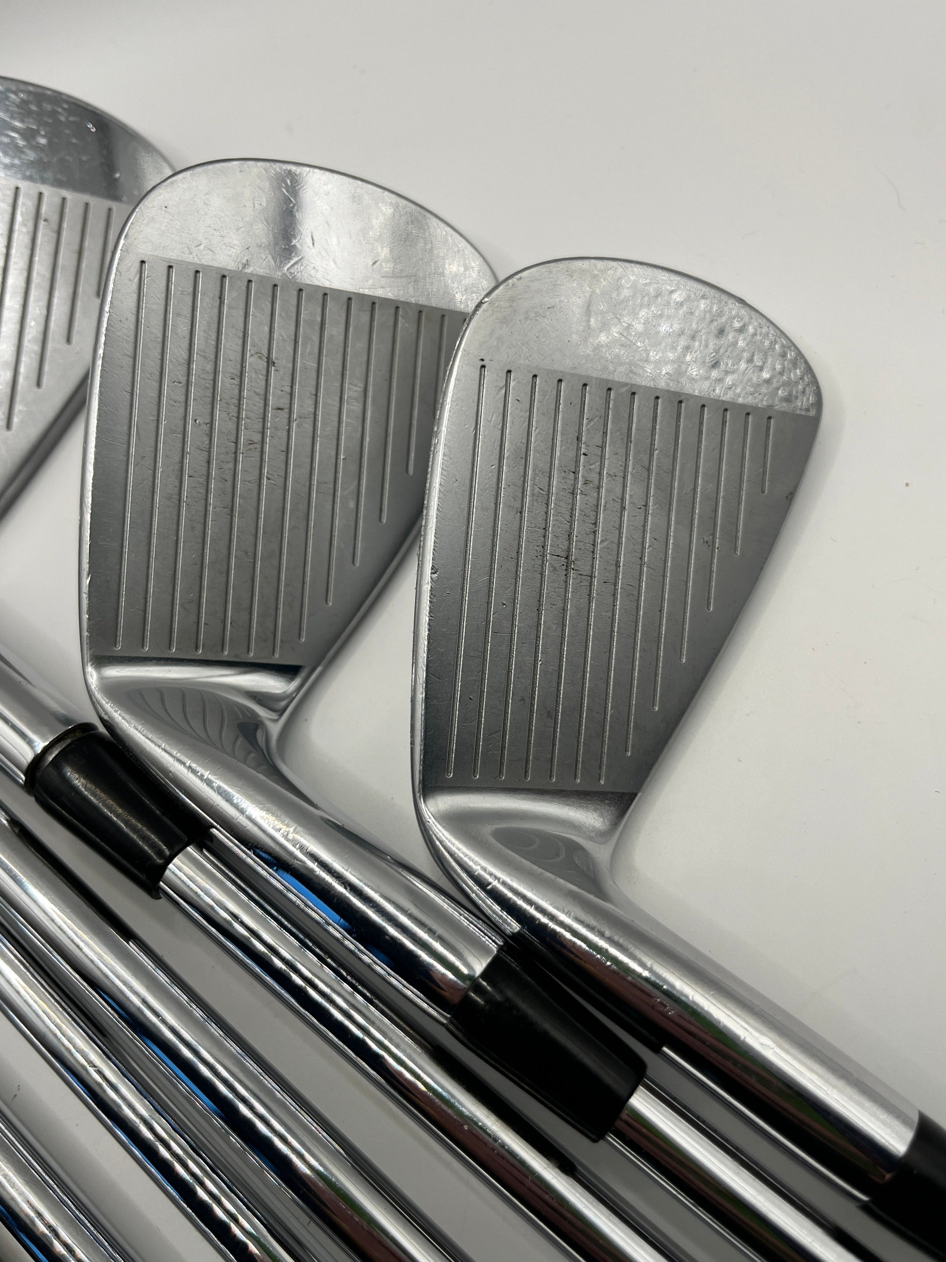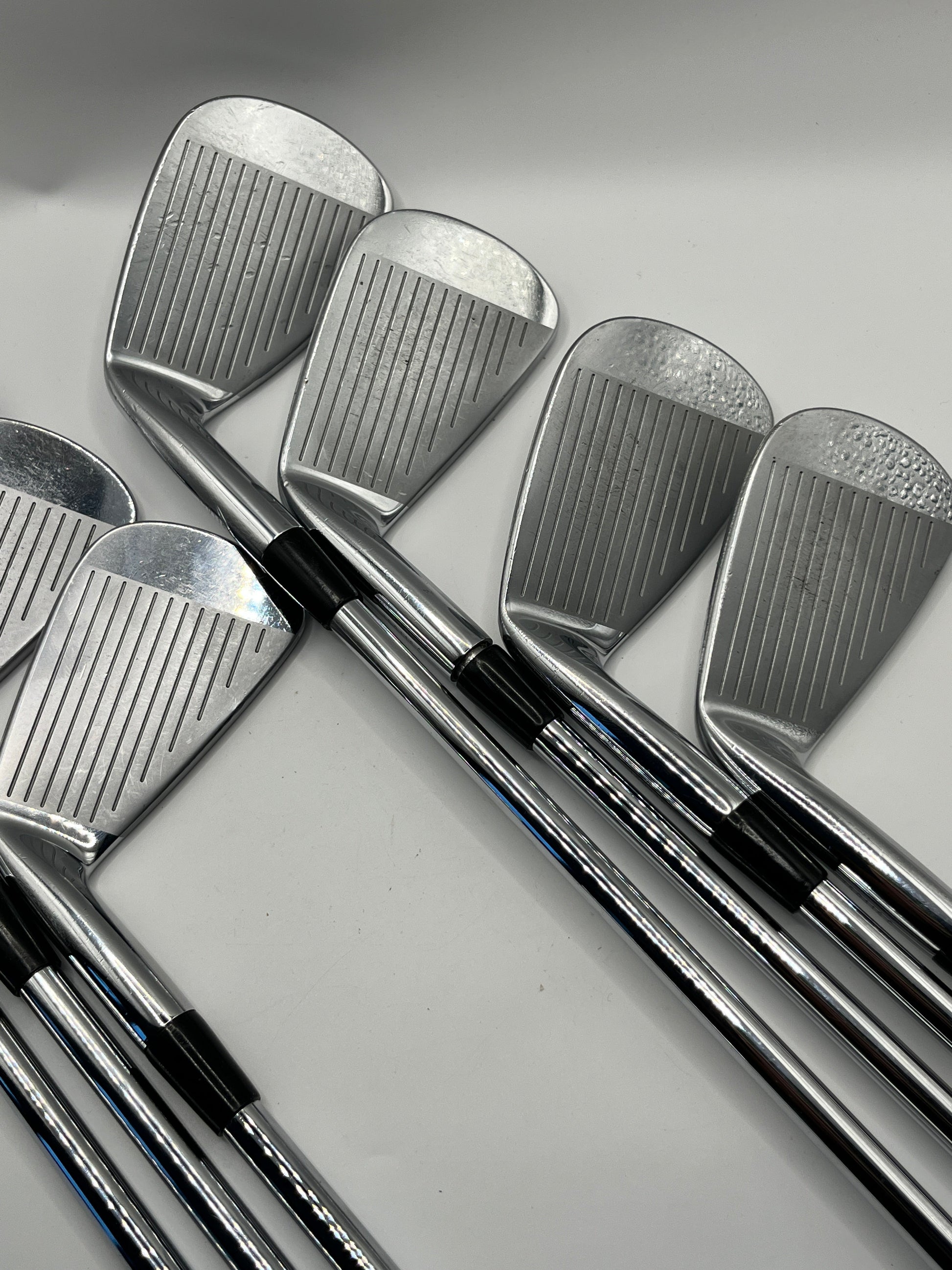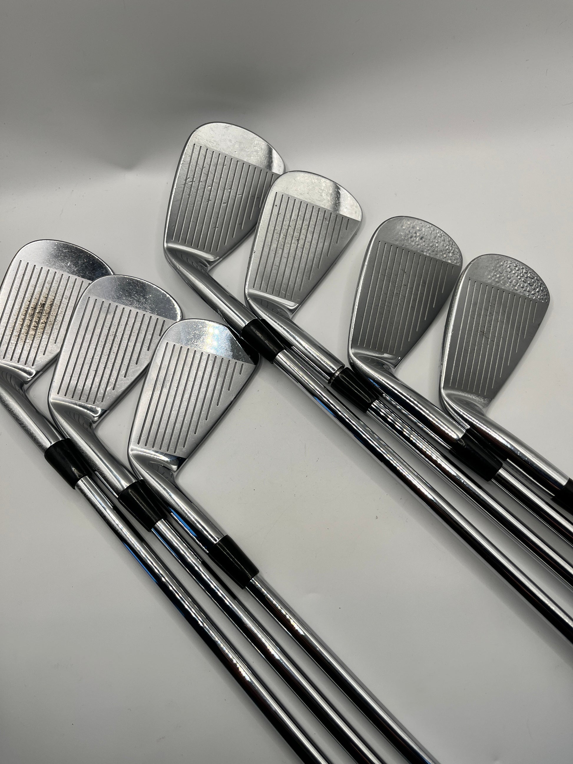 The irons are in actually in very good condition as per the photos. It's just the 6 iron which has the ball strike mark from practice. The photo highlights it but at address you don't really notice it. Really are a good looking set at a bargain price.